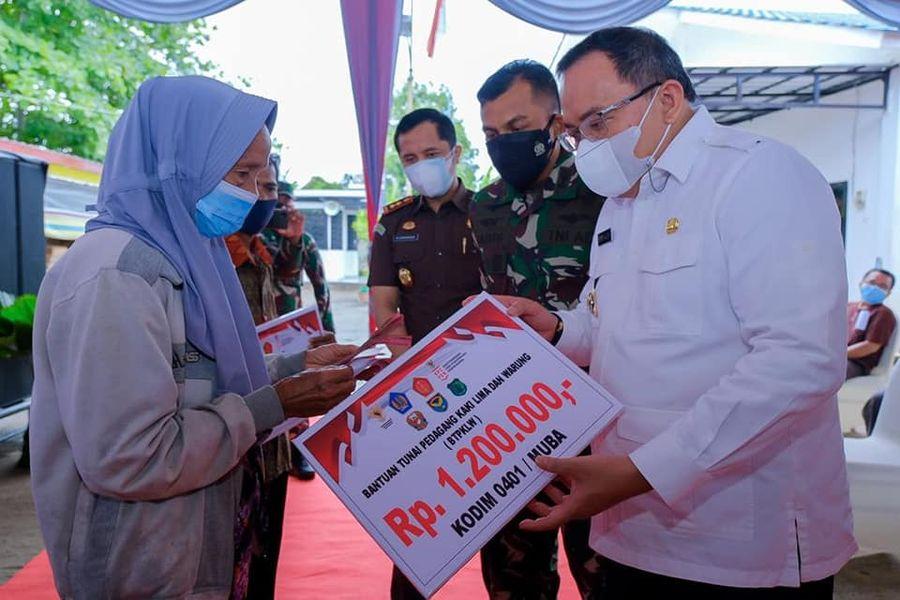 Bareng TNI, Bupati Dodi Serahkan BLT ke 1.500 PKL Muba