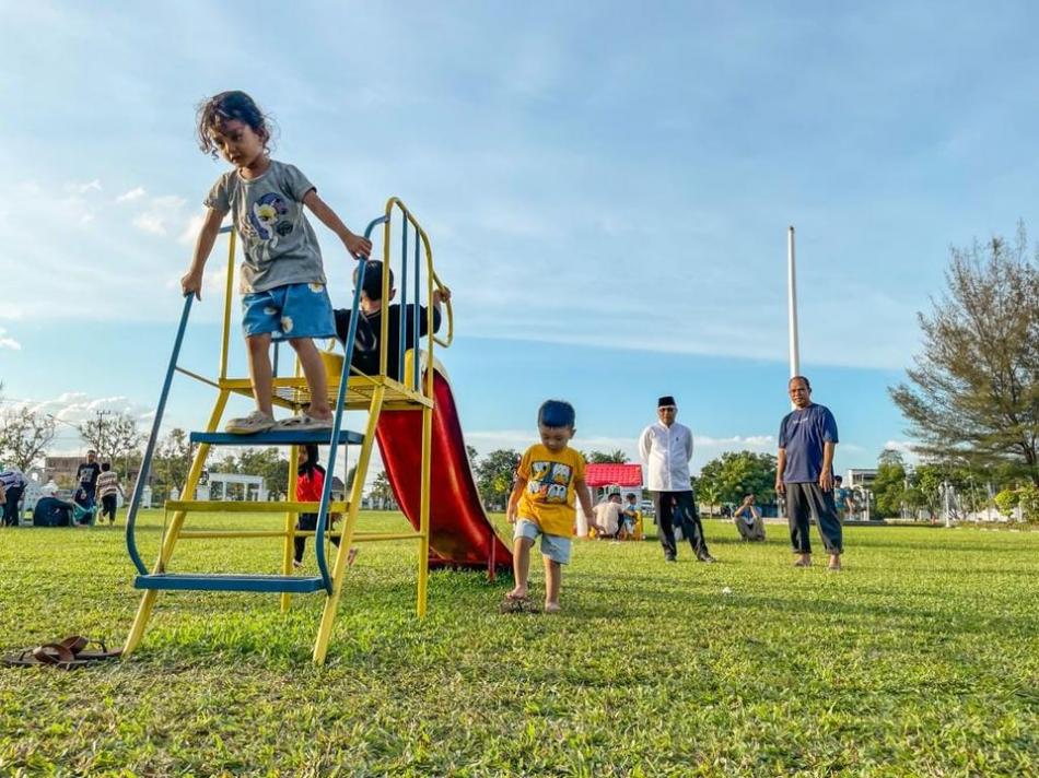 Pantauan di lokasi tampak Kandidat Doktor Universitas Sriwijaya itu menyapa warga yang membawa anak dan cucu untuk bermain di halaman Rumdin Bupati Muba yang sejak dirinya menjabat Pj Bupati halaman Rumdin Bupati dibuka untuk umum.