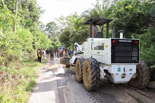 "Kalau tidak diatasi segera tentu masyarakat akan kesulitan melintasi jalan ini, oleh sebab itu kita hari ini langsung atasi sementara dengan melakukan penimbunan dan pengerasan jalan," bebernya.