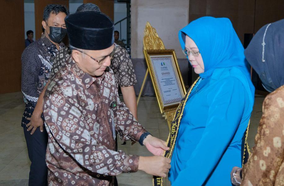 SEKAYU - Pj Ketua Tim Penggerak PKK Kabupaten Musi Banyuasin (Muba), Hj Asna Aini Apriyadi dikukuhkan sebagai Bunda Literasi Kabupaten Muba. Pengukuhan dilakukan langsung oleh Pj Bupati Muba H Apriyadi MSi di sela kegiatan Kick Off Aplikasi SRIKANDI, bertempat di Gedung Opproom Pemkab Muba, Kamis (21/7/2022).