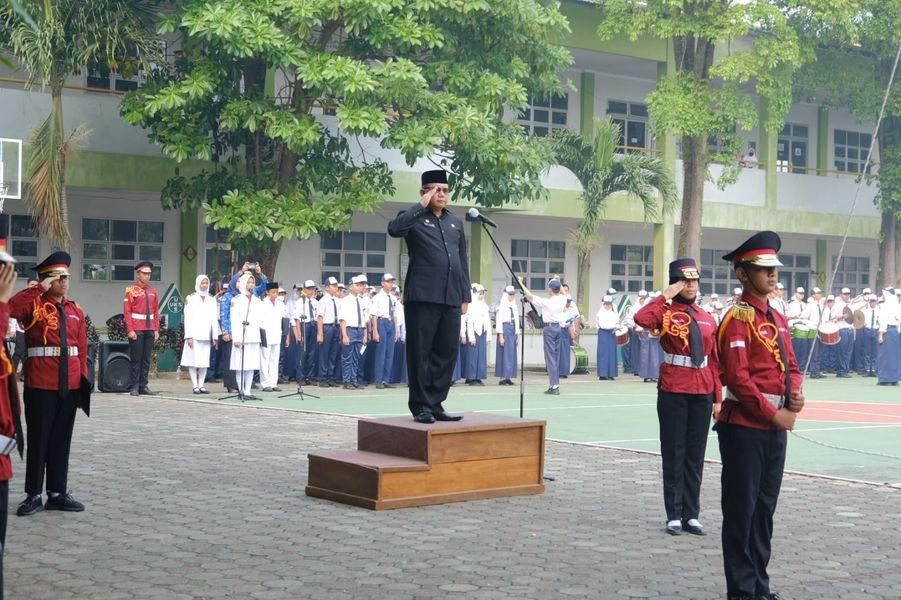 SEKAYU, MUBA- Pj Sekda Muba Musni Wijaya S Sos MSi pimpin upacara Peringatan Hari Kesaktian Pancasilayang yang digelar di lapangan Halaman SMP Negeri 6Unggul Sekayu, Senin (02/10/2022).