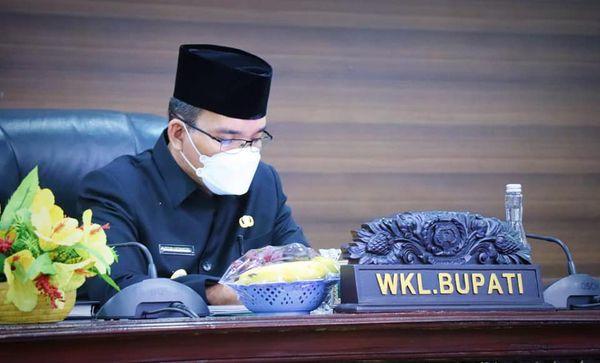 SEKAYU- Bupati Musi Banyuasin Dr H Dodi Reza Alex Noerdin Lic Econ MBA melalui Wakil Bupati Musi Banyuasin Beni Hernedi SIP menghadiri Rapat Paripurna DPRD Masa Persidangan III Rapat ke-11dalam rangkaPemandangan Umum Fraksi–fraksi DPRD terhadap 3 (tiga) usulan Raperda. Rapat berlangsung di Ruang RapatParipurna DPRDKabupatenMuba, Senin (21/6/2021).