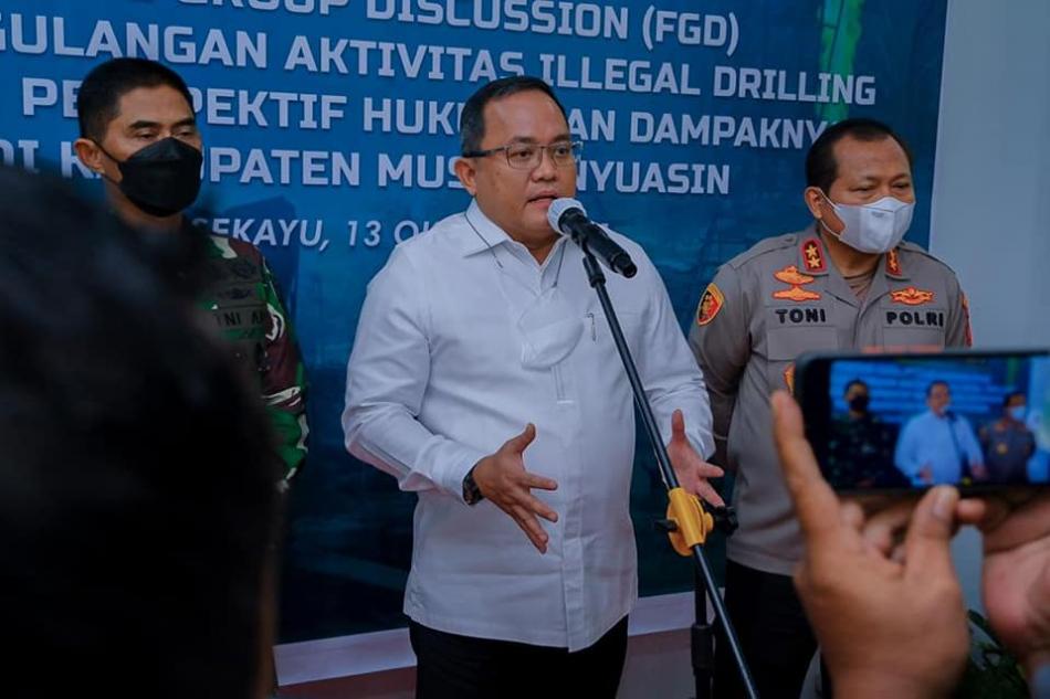 "Kita berharap FGD yang kita lakukan hari ini bisa menelurkan pokok-pokok pikiran yang nantinya akan dibawa oleh tim koordinasi revisi Permen untuk dibawa ke pemerintah pusat. Saya bersyukur sekali tidak sendiri karena mendapat suport langsung dari Kapolda Sumsel dalam penanganan illegal driling ini. Mudah-mudahan secepatnya kita akan mendapatkan solusi jangka panjang dari permasalahan yang sudah bertahun-tahun ini,"pungkasnya.