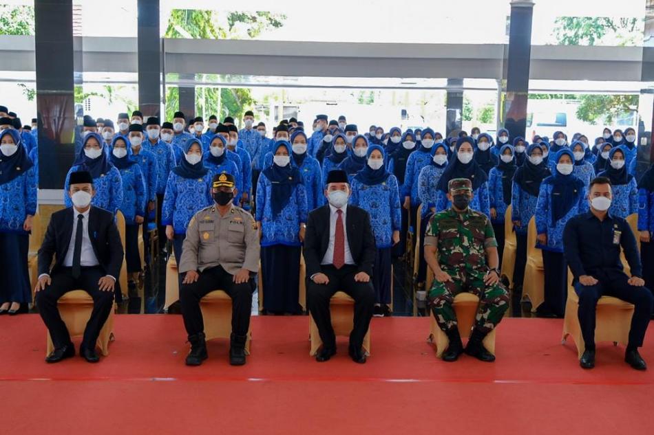 SEKAYU - Plt Bupati Musi Banyuasin Beni Hernedi mengambil sumpah/janji sebanyak 226 orang Pegawai Negeri Sipil (PNS) di lingkungan Pemerintah Kabupaten Muba, bertempat di Pendopoan Griya Bumi Serasan Sekate, Senin (6/12/2021).
