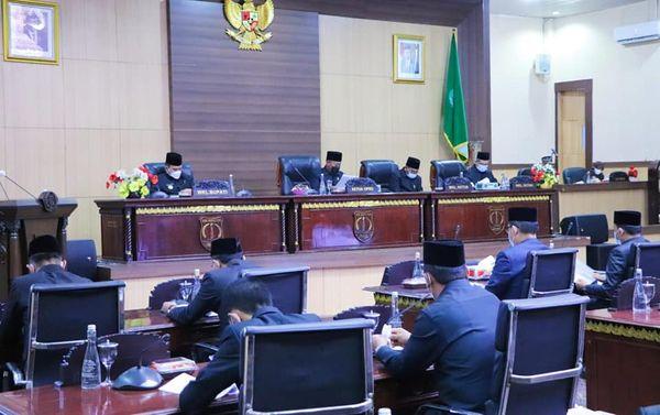 Rapat paripurna DPRD Masa Persidangan III Rapat ke-10 ini dipimpin oleh Ketua DPRD Muba, Sugondo SH dan dihadiri para wakil ketua dan anggota DPRD Muba, Kalolres Muba AKBP Erlin Tangjaya SIk, Dandim 0401 Muba Letkol Arh Faris Kurniawan SST MT, Sekda Muba Drs H Apriyadi MSi, para Asisten, serta para Kepala Perangkat Daerah di lingkungan Pemkab Muba, Senin (21/6/2021).